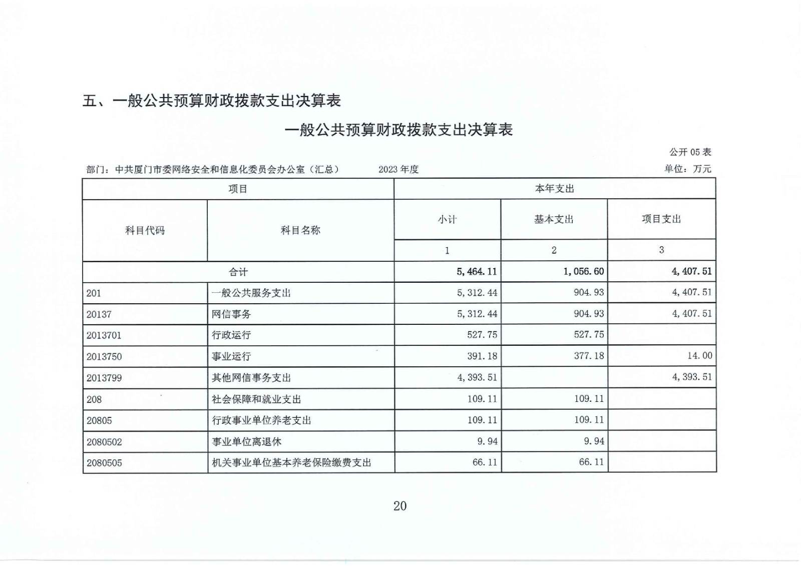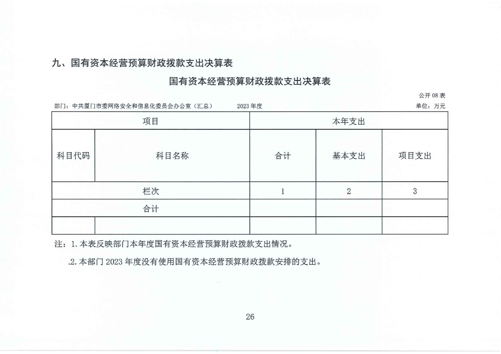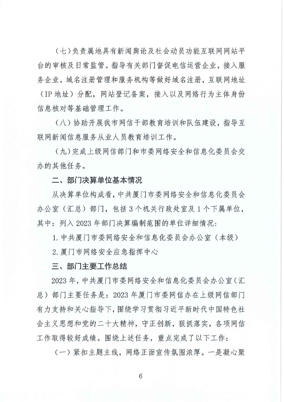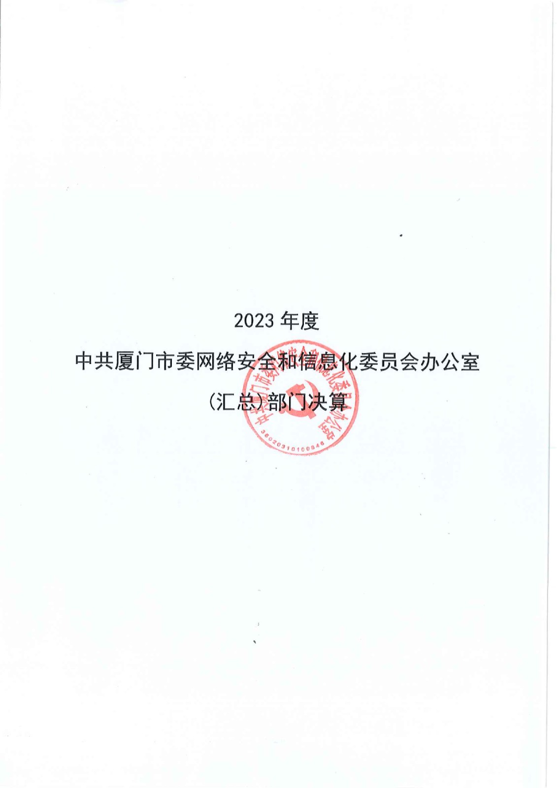 2023年度中共厦门市委网络安全和信息化委员会办公室(汇总)部门决算