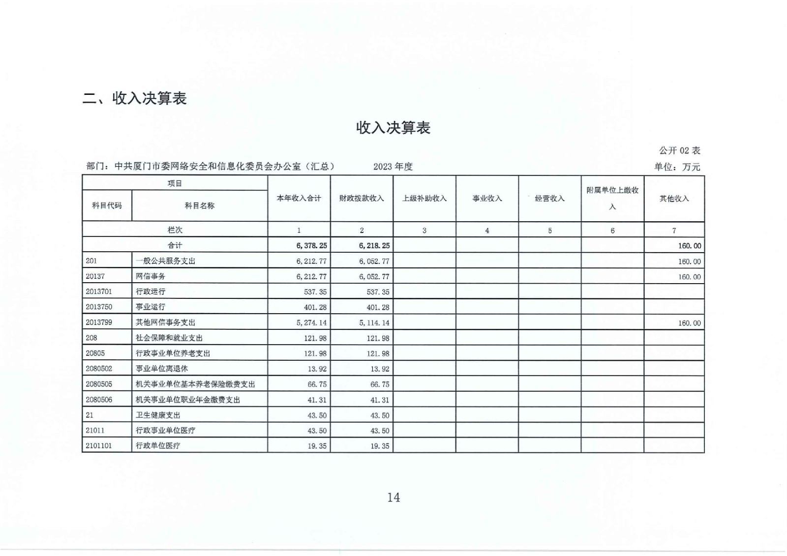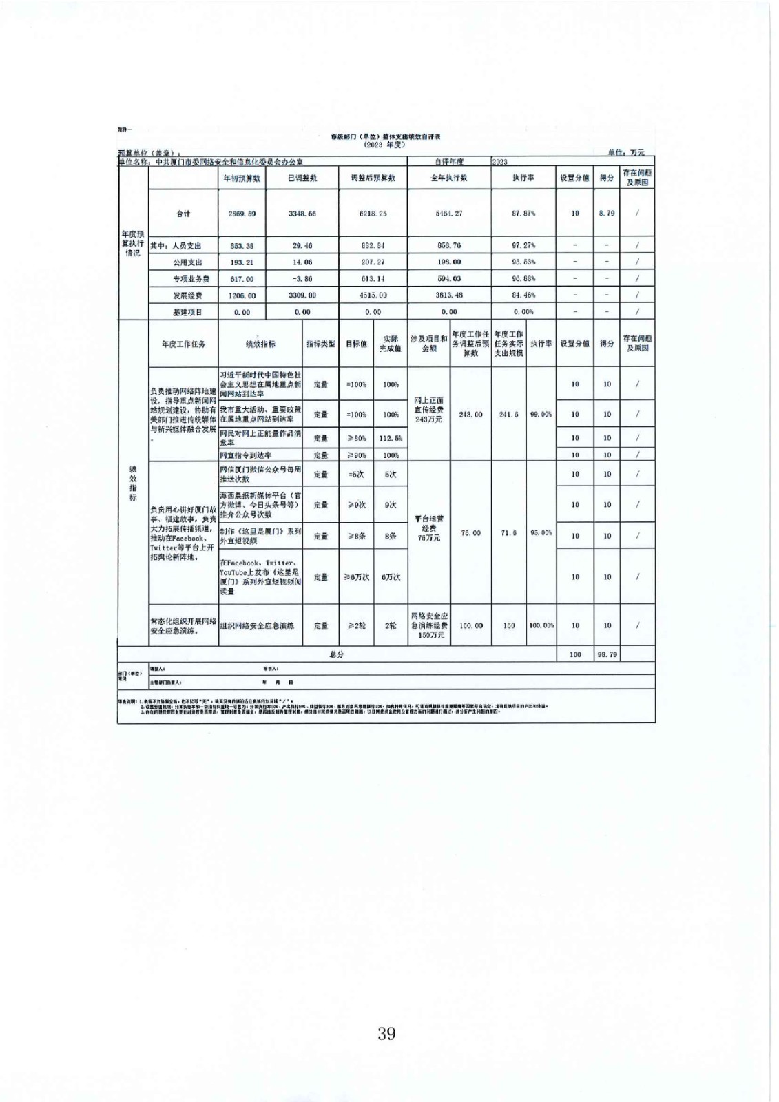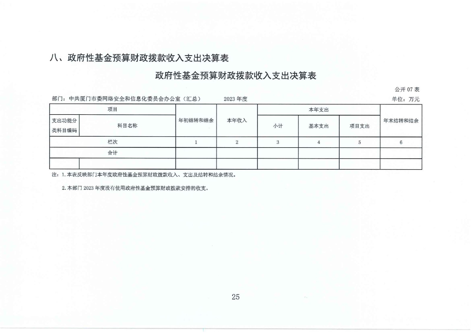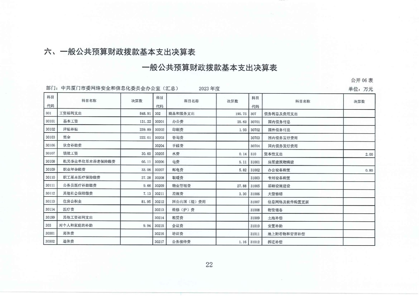 2023年度中共厦门市委网络安全和信息化委员会办公室(汇总)部门决算